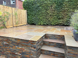 In Andover, Hampshire, we recently installed a new patio using high-quality Indian sandstone paving, known for its natural beauty and long-lasting durability. To complete the project, we added split slate wall tiles to the garden wall, creating a stylish contrast that enhances the outdoor space. This combination of Indian sandstone patio and slate wall tiles not only improves the look of the garden but also provides a practical, low-maintenance solution for the homeowners.